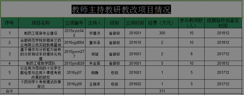 上一条:教师主持科研项目情况 下一条:中国合肥师范学院与爱尔兰阿斯隆理工学院合作举办制药工程专业本科教育项目人才培养方案